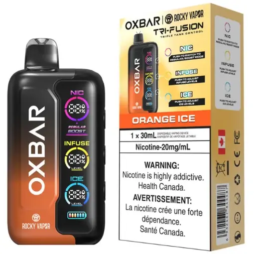 Step into the future of vaping with the OXBAR x Rocky Vapor TRI-FUSION — the best customizable vape device for flavor chasers, cloud enthusiasts, and serious vapers alike. Featuring a Triple Tank Control System, this advanced vape allows you to independently adjust nicotine strength (NIC), flavor intensity (INFUSE), and cooling effect (ICE) in real time. No more compromises — fine-tune your perfect vape with a simple touch.